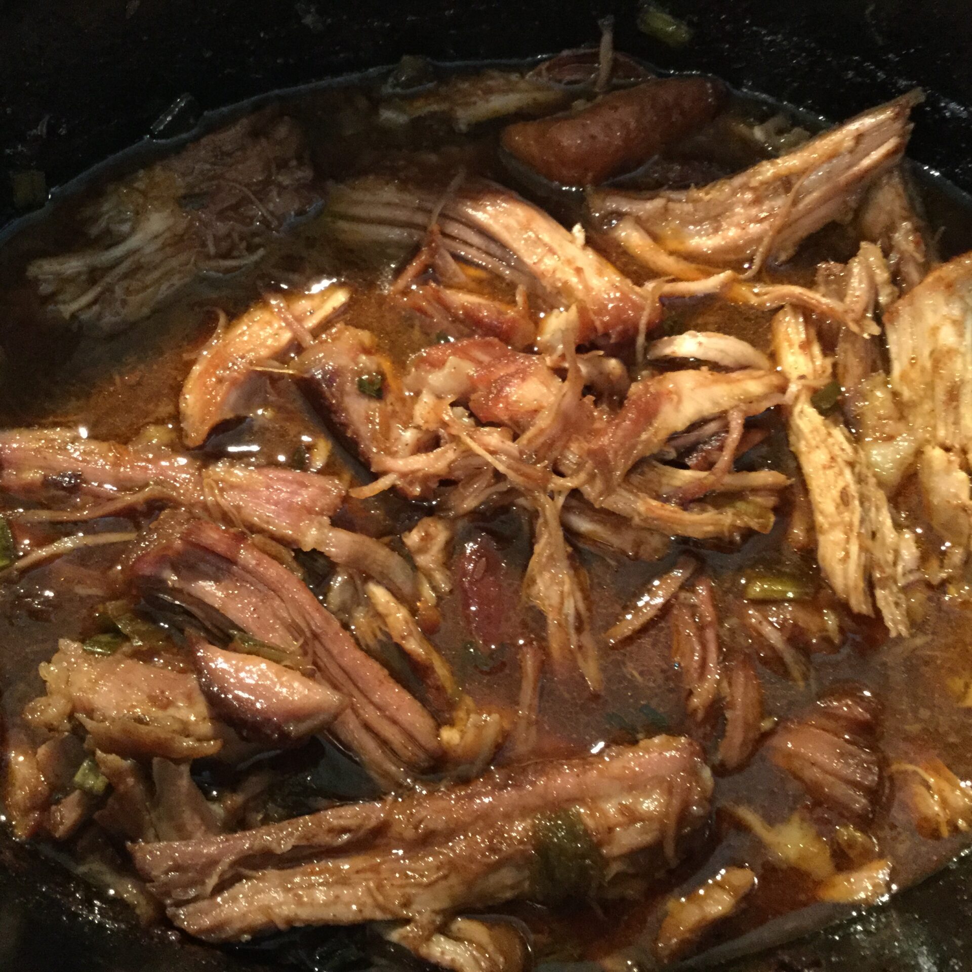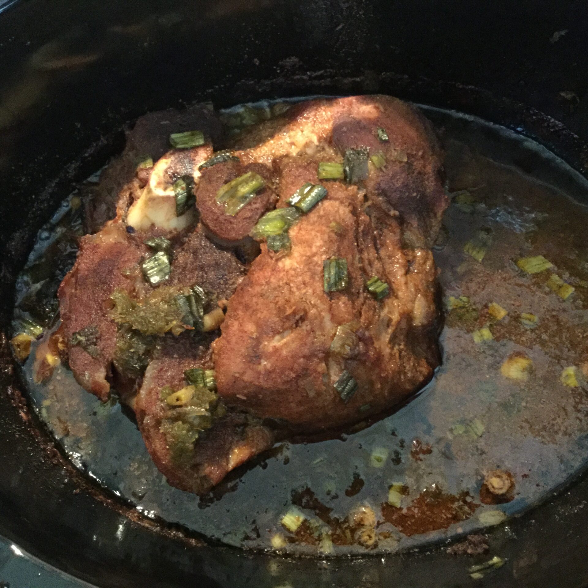 J’ai fait cuire mon épaule de porc dans la mijoteuse à « low » pendant huit heures au lieu de le faire dans le four comme Bob l’indique dans sa recette.