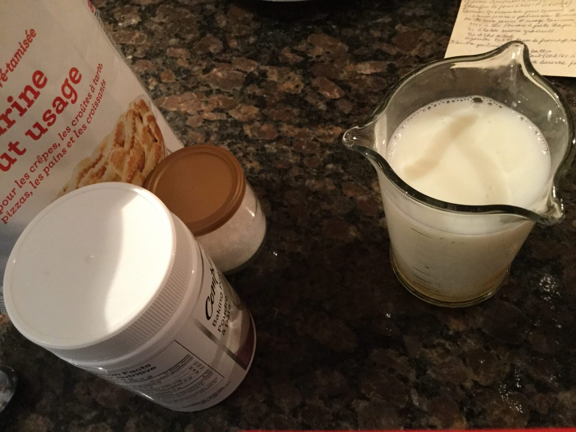 ¼ tasse de sucre + ½ cuillère à thé de sucre (pour saupoudrer sur le dessus avant de mettre au four)